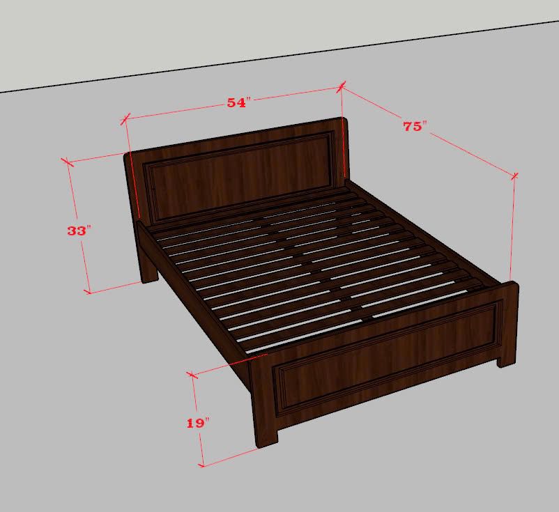 - Bed Frame (Full Size): 75'' L × 54'' W × 19'' H