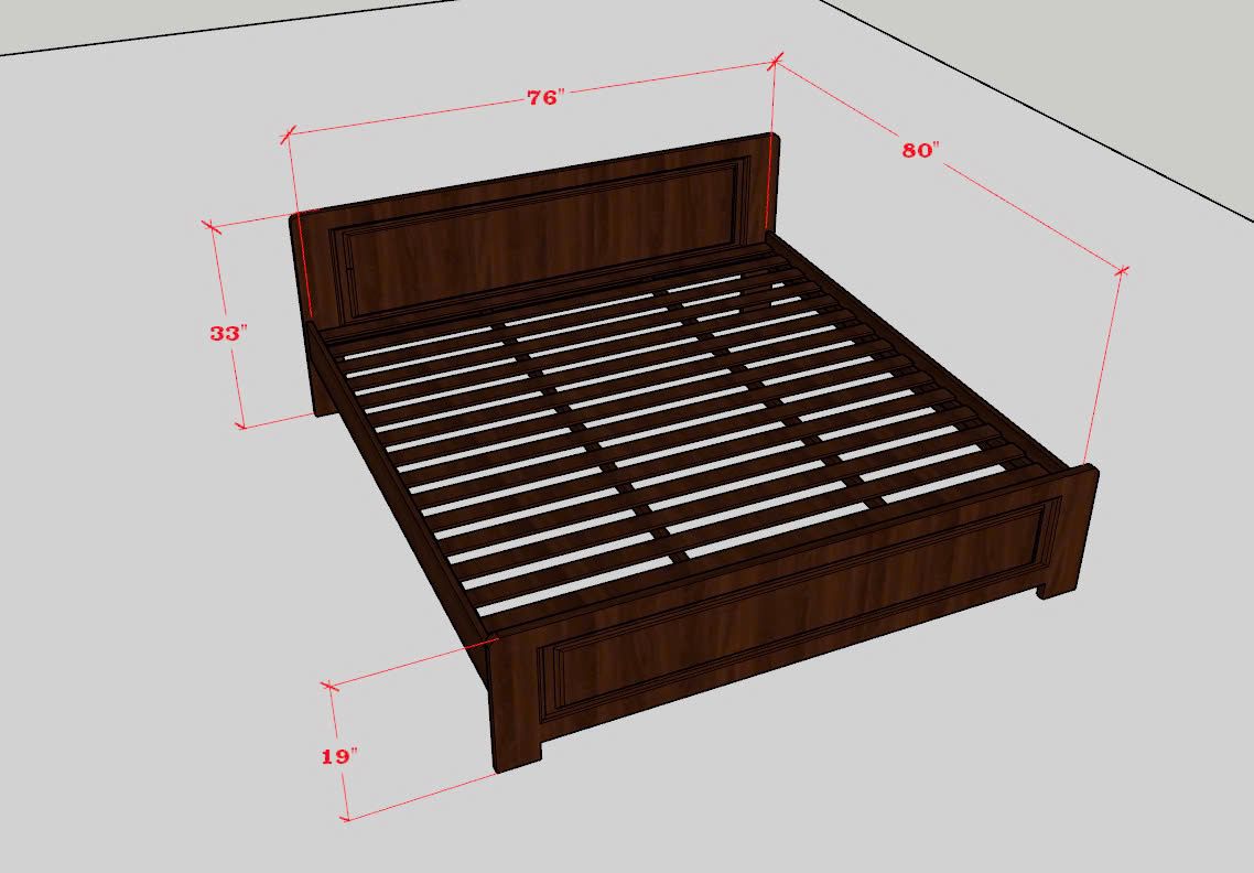 - Bed Frame (King Size): 80'' L × 76'' W × 19'' H