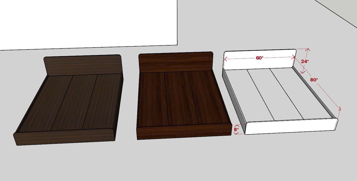 Bed Frame (Queen Size): 60'' W × 80'' D × 8'' H