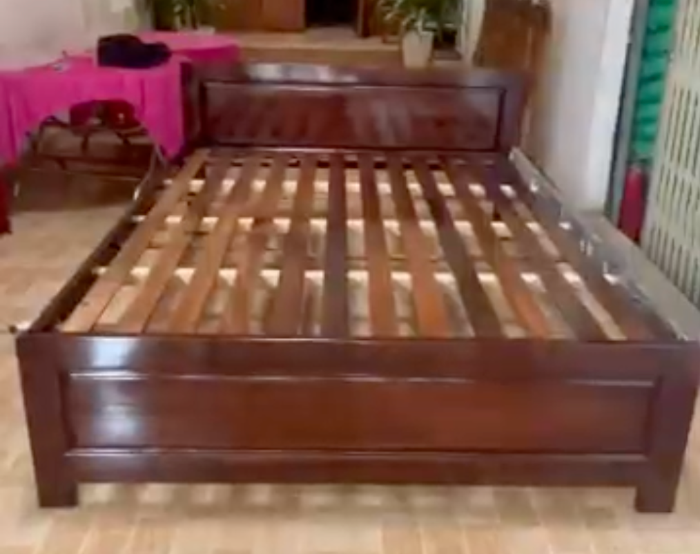 Our Classic Wooden Bed Frame (Queen Size) is expertly crafted from premium solid wood and finished in a rich, deep brown polish that enhances the natural wood grain. With its sophisticated headboard and footboard paneling, this bed frame is designed to complement any décor — from modern minimalism to traditional interiors.