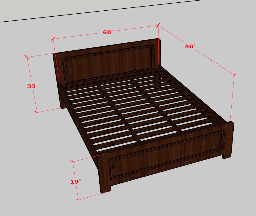 - Bed Frame (Queen Size): 80'' L × 60'' W × 19'' H